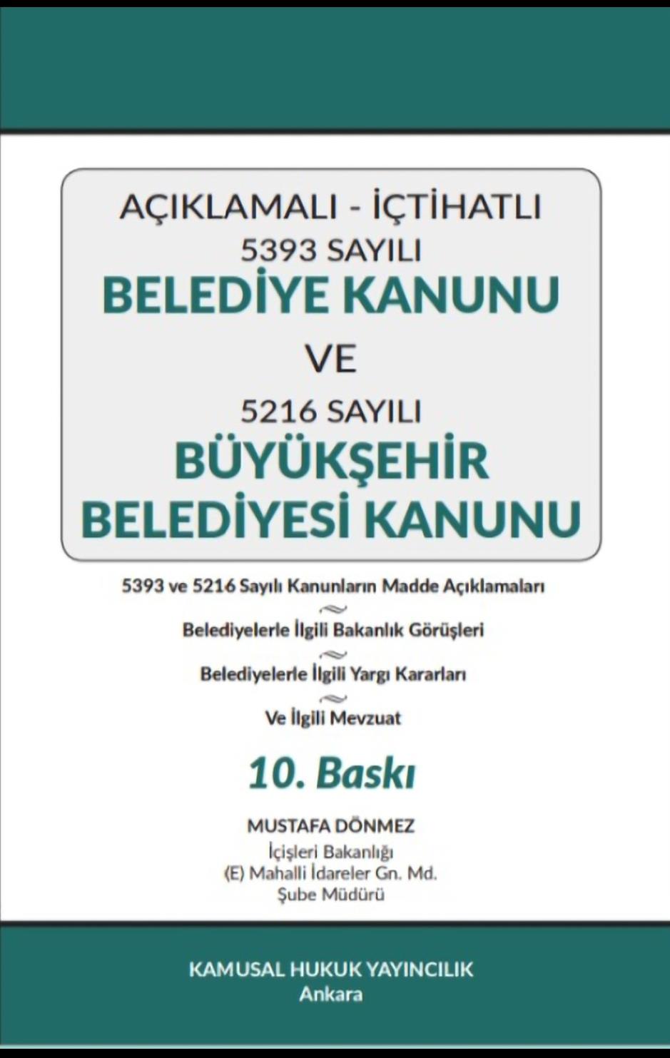 5393 Sayılı BELEDİYE KANUNU ve 5216 Sayılı BÜYÜKŞEHİR BELEDİYE KANUNU (Mustafa DÖNMEZ) 5393 Sayılı BELEDİYE KANUNU ve 5216 Sayılı BÜYÜKŞEHİR BELEDİYE KANUNU