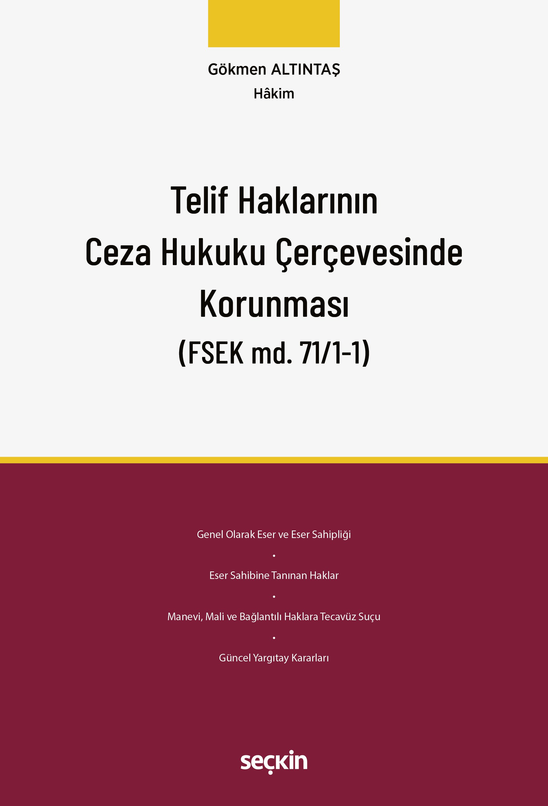 Kitapta, FSEK (Fikir ve Sanat Eserleri Kanunu) madde 71/1-1'de düzenlenen eser sahibinin manevi, mali ve bağlantılı haklarına tecavüz suçu, ceza hukukunun genel hükümleri dikkate alınarak son kanun değişiklikleri ve güncel Yargıtay kararları ışığında ayrıntılı bir şekilde incelenmiş ve uygulamada karşılaşılan sorunlara çözüm önerileri sunulmaya çalışılmıştır. Ayrıca kitapta, konuyla ilgili olarak öğretide ve Yargıtay kararlarında yer alan tartışmalı hususlara da detaylı bir şekilde yer verilmiştir.