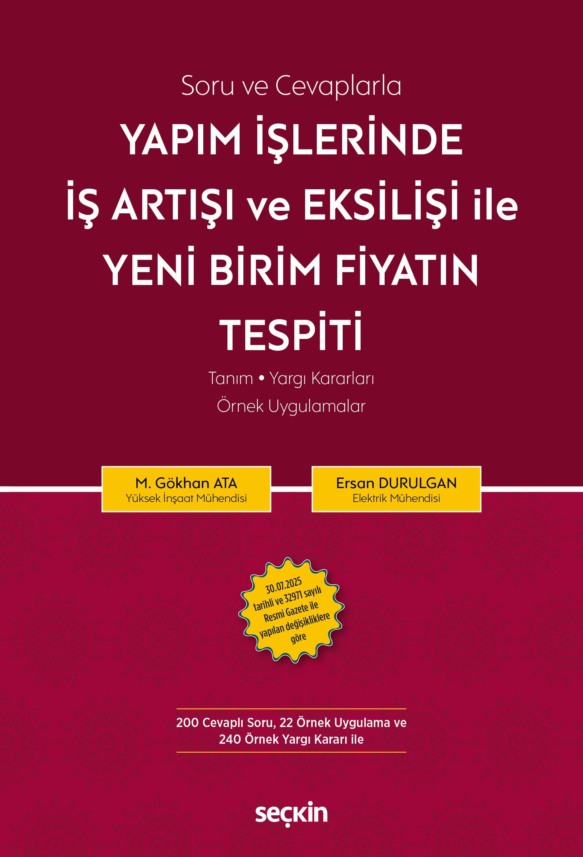 Kitapta, 4734 sayılı Kamu İhale Kanunu (KİK) kapsamında ihalesi yapılmış ve 4735 sayılı Kamu İhale Sözleşmeleri Kanunu (KİSK) uyarınca sözleşmesi imzalanmış yapım işlerinde, iş artışı, eksilişi ve yeni birim fiyat tespiti konularını en ince detayına kadar incelenmiştir. Konunun tam olarak anlaşılabilmesi amacıyla, sayısal uygulamalar ve bu konulara ilişkin yargı kararlarıyla birlikte değerlendirmeler yapılmıştır.