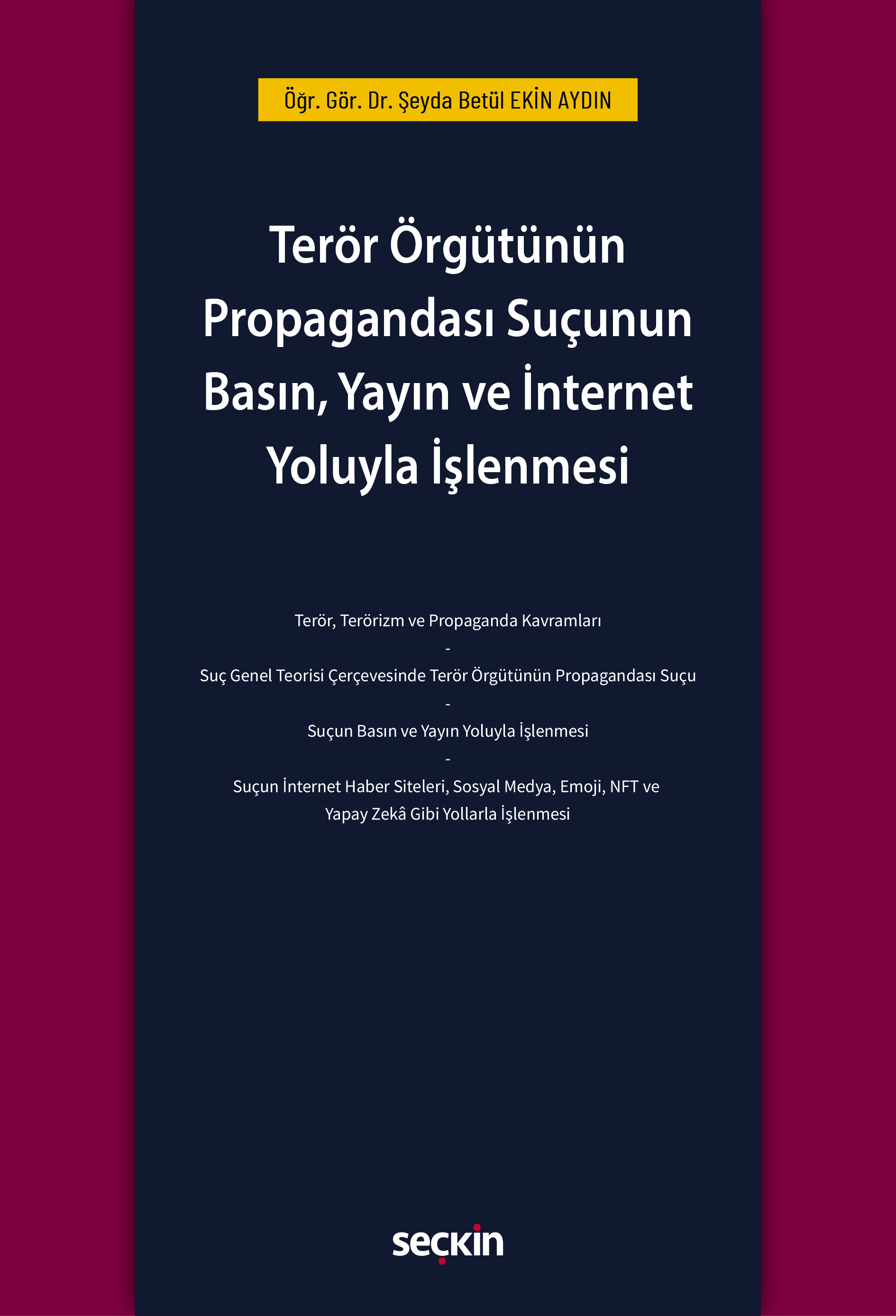 Bu kitapta suçun internet yoluyla işlendiği her durum ve koşulda "suçun basın ve yayın yoluyla işlenmesi" yönündeki cezayı ağırlaştırıcı nedenin uygulanması eleştirilmekte ve çeşitli çözüm önerileri getirilmektedir. Bu yapılırken ilk bölümde terör, terörizm ve propaganda gibi kavramlar sistematik şekilde ele alınmıştır. İkinci bölümde ise terör örgütünün propagandası suçu, suç genel teorisi çerçevesinde değerlendirilmiştir. Son bölümde ise suçun basın, yayın ve internet yoluyla işlenmesi halinde özellik arz edebilecek durumlar ile ortaya çıkabilecek hukuki sorunlar açıklanmıştır.