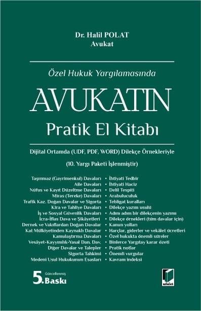Kitapta dava esası izlenmiştir. Her bir davanın dayanağını oluşturan ilgili mevzuat hükümlerine, davanın anlamına ve esaslarına, davacısı ve davalısına, görevli ve yetkili mahkemeye, harç ve vekâlet ücreti bilgilerine, varsa hak düşürücü ve zamanaşımı sürelerine, önemli davalara dair ispat yöntemine, davayla ilgili araştırılacak hususlara, Yargıtay'ın davayla ilgili en önemli karar özetlerine ve nihayet, her bir dava ile ilgili dilekçe örneklerine yer verilmiştir.